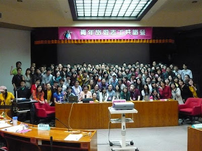 2008年4月21日 星期一青輔會第二屆旅遊志工共識營,為期兩天一夜2008/04/12、13圓滿結束,活動內容豐富;講師陣容堅強,北區各大專院校百多位學子及各界青年齊聚一堂,我們不只要讓台灣更深入人心,更要把台灣的光芒散發到世界去!
