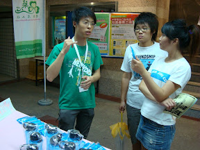 再回到場外,裴琳加入戒煙攤位服務,展現她親切、大方、迷人的笑容,同學還真是捧場,馬上就來報名參加戒煙比賽。感謝國民健康局提供測試體內一氧化碳濃度器材,幫同學作健檢。也感謝尼古清贊助戒菸光碟與手冊。