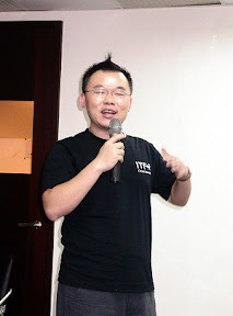 用過中餐後,介紹部落格與網路行銷的是背包客棧的站長小眼睛,以及部落格作家查理王。查理王很了不得,頭上有沖天炮,學學文創的執行長。至於小眼睛,他真的就是小眼睛,如果不講話還真讓人懷疑他是不是醒著,背包客棧站長